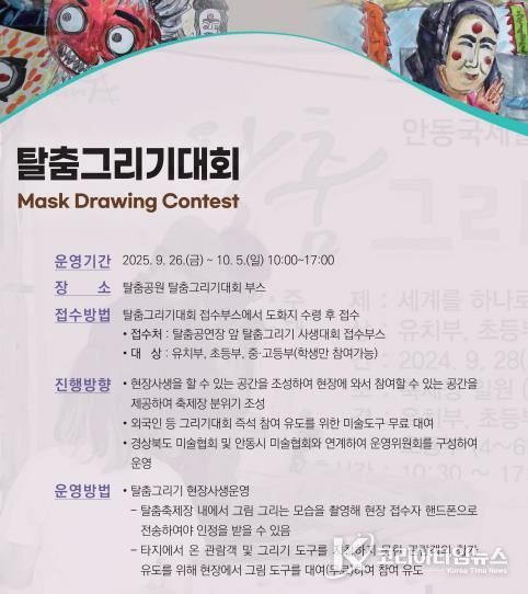 코리아타임뉴스 윤경수 기자 | 2025 안동국제탈춤페스티벌에서는 축제 기간 동안 세계탈춤그리기대회가 운영된다.