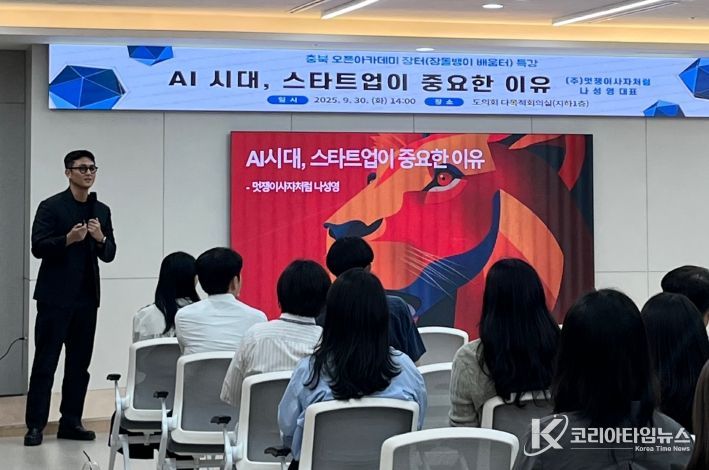 이혜란 충북도 과학기술정책과장은 “이번 강연은 AI 기술 발전과 스타트업 생태계의 중요성을 다시 확인하는 자리였다”며, “도정과 지역사회가 미래 변화를 선제적으로 준비하는 계기가 됐다”고 밝혔다.