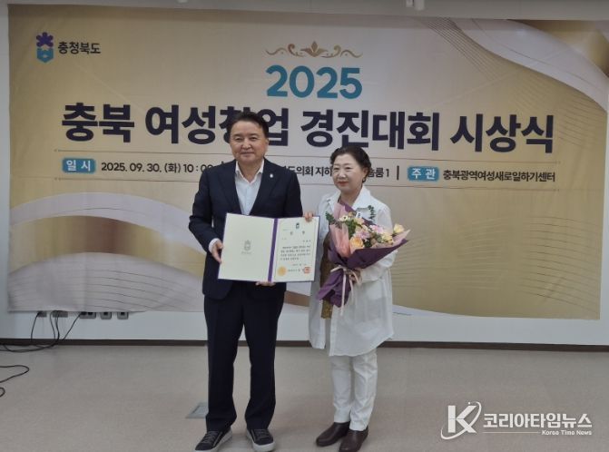 코리아타임뉴스 박찬식 기자 | 충북 영동여성새로일하기센터는 지난달 30일 열린 ‘2025 충북 여성창업 경진대회’에서 ‘율동’ 박율채 대표가 우수상을 수상했다고 밝혔다.