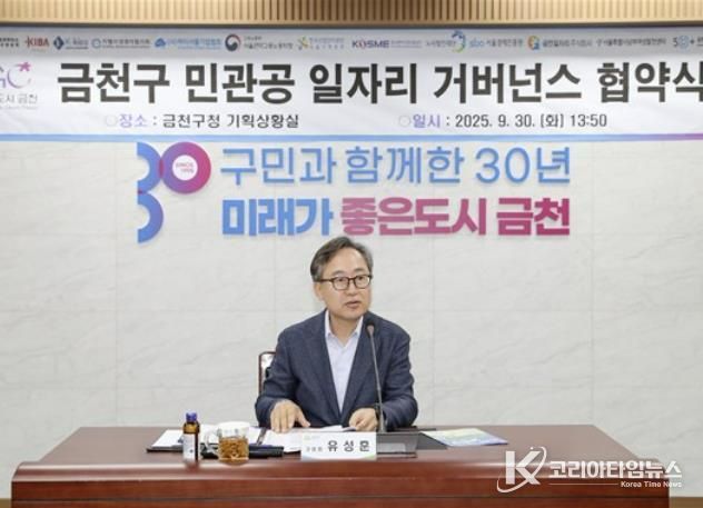 코리아타임뉴스 윤광희 기자 | 금천구는 지역 내 일자리 창출 활성화를 위해 금천구 민관공 일자리 거버넌스를 구성하고, 30일 참여기관들이 모여 업무협약식을 개최했다고 밝혔다.