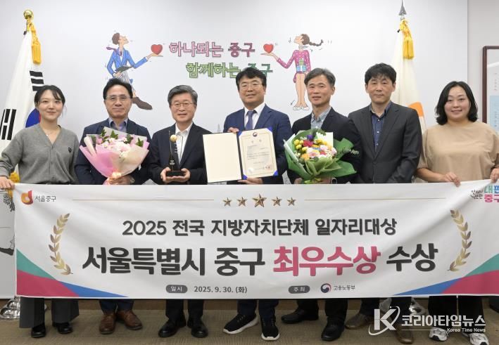 코리아타임뉴스 윤경수 기자 | 서울 중구가 고용노동부가 주관한 ‘2025년 전국 지방자치단체 일자리대상’우수사업 부문에서 전국1위인 최우수상을 차지했다. 대한민국 관광1번지인 중구는 지역기업과 상생하며 관광산업 인력난과 중장년층 구직난을 동시에 해결해 높은 평가를 받았다.