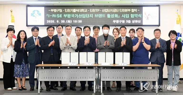 코리아타임뉴스 사회팀 | 부평구는 지난 30일 구청 상황실에서 인천가톨릭대학교 ·인천테크노파크·한국산업단지공단과 함께 ‘I-RISE 부평국가산업단지 브랜드 활성화 사업’ 협약을 체결했다.
