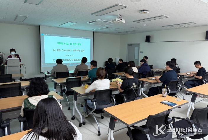 코리아타임뉴스 사회팀 | 인천광역시계양구시설관리공단(이사장 박성민)은 9월 23일과 25일 양일간 임직원을 대상으로 ‘AI 활용 실무역량 강화 교육’을 실시했다고 밝혔다.