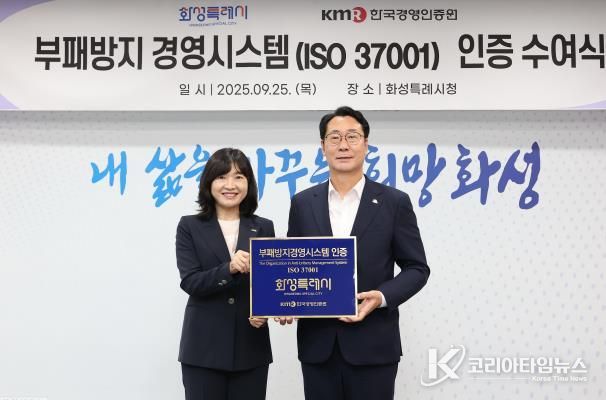 코리아타임뉴스 사회팀 | 화성특례시가 국제표준화기구(ISO)에서 제정한 부패방지경영시스템 (ISO37001) 인증을 획득했다.
