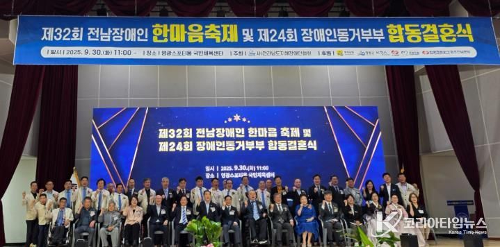 코리아타임뉴스 윤경수 기자 | 전라남도는 지난 9월 30일 영광스포티움국민체육센터에서 제32회 전남장애인한마음축제와 제24회 장애인동거부부 합동결혼식을 성황리에 개최했다고 밝혔다.