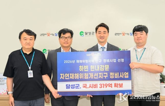 코리아타임뉴스 대구취재본부 | 달성군은 행정안전부가 주관하는 ‘2026년 자연재해위험개선지구 정비사업 신규사업’에서 하빈 현내감문지구가 최종 선정돼 국·시비 319억 원을 확보했다고 밝혔다.