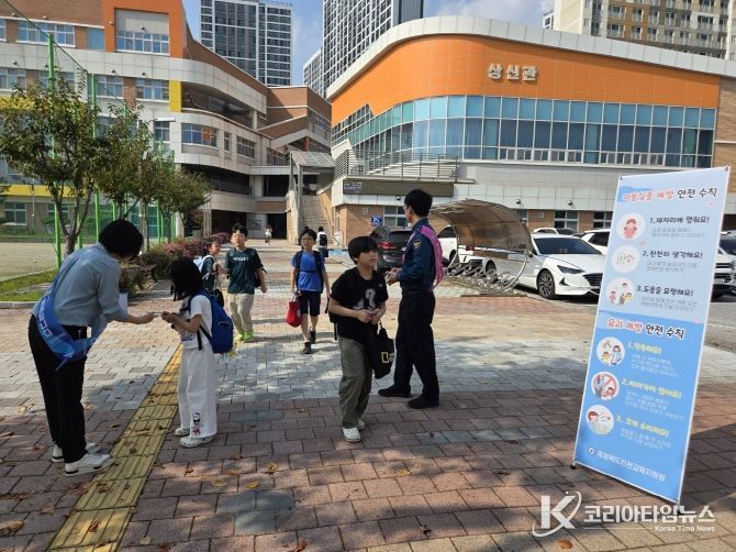 코리아타임뉴스 사회팀 | 충청북도진천교육지원청은 10월 1일, 진천상신초 정문에서 아동 실종 및 유괴 예방을 위한 안전한 하굣길 캠페인을 실시했다.