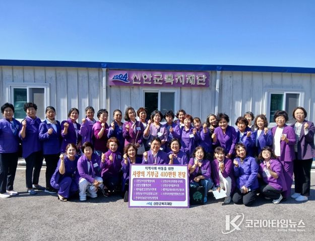 코리아타임뉴스 윤경수 기자 | 신안군 지역 복지 발전에 앞장서고 있는 신안군여성단체협의회(회장 안미영)를 비롯한 9개 여성 관련 단체 임원 32명은 1일 신안군복지재단(이사장 강정희)을 방문해 ‘어린이집 연합 한마음 대회’ 지원을 위한 기부금 410만 원을 쾌척하며 지역사회 어린이들을 위한 나눔을 실천했다.
