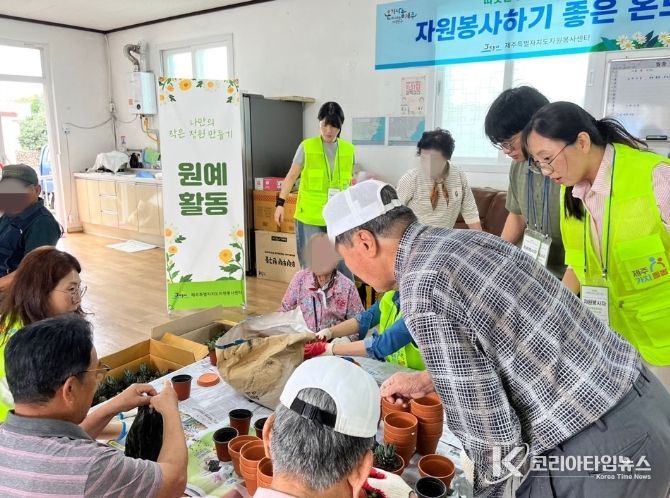 코리아타임뉴스 한장선 객원기자 | 제주특별자치도사회서비스원은 지난 9월 30일, 성산읍 신풍리경로당에서 어르신들과 함께하는 원예 자원봉사 활동을 실시했다.