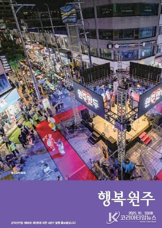 코리아타임뉴스 이아름 기자 | 행복원주 10월호에서는 새롭GO, 변화GO, 채우GO, 늘리GO 민선8기 시민과 함께한 3년을 경제·교육·교통·안전·복지·환경 분야로 담았으며, 원주에서 열리는 축제 행사 안내와 다양한 원주 소식도 소개했다.