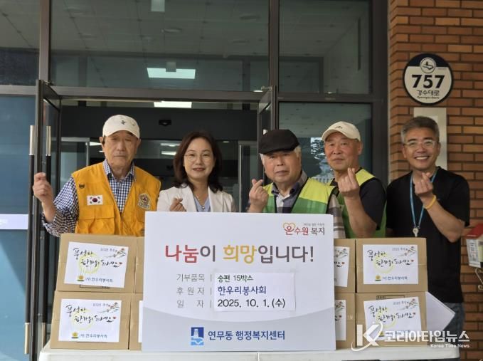 공순정 연무동장은 “매년 명절마다 잊지 않고 따뜻한 정성을 전해주시는 한우리봉사회에 감사드린다”며 “전달된 물품이 어려운 이웃들에게 따뜻한 명절을 보내는 데 도움이 될 것”이라고 말했다.