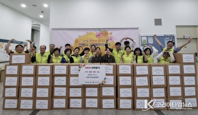 코리아타임뉴스 윤광희 기자 | 의왕시 고천동지역사회보장협의체는 지난 1일 홀로 계신 어르신 등 관내 저소득 50가구를 대상으로 따뜻한 마음을 담아 추석 명절 선물 나눔 행사를 진행했다.