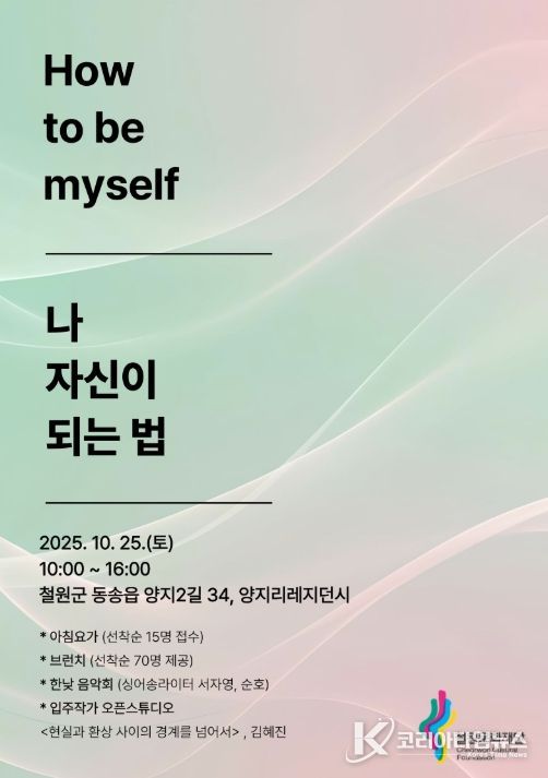 코리아타임뉴스 이아름 기자 | 철원문화재단은 2025년 10월 25일 오전 10시부터 16시까지 양지리 레지던시를 개방해 웰니스 문화행사를 진행한다.