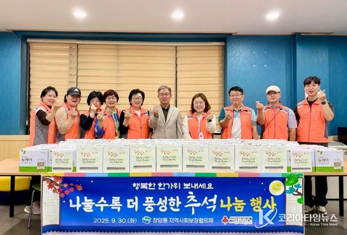 코리아타임뉴스 기동취재팀 | 의정부시 장암동주민센터는 9월 30일 추석 명절을 맞아 장암동 지역사회보장협의체와 함께 ‘나눌수록 더 풍성한 추석’ 나눔 활동을 실시했다고 밝혔다.