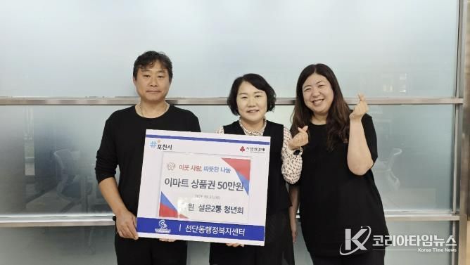 코리아타임뉴스 윤광희 기자 | 포천시는 지난 30일, 선단동 설운2통 청년회가 지역 내 어려운 이웃을 돕기 위해 50만 원 상당의 상품권을 선단동 행정복지센터에 기부했다고 밝혔다.