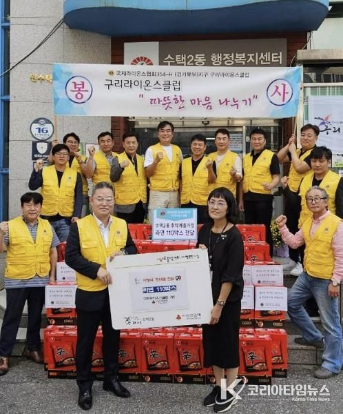 코리아타임뉴스 경기취재본부 | 구리시 수택2동 행정복지센터는 지난 10월 1일, 구리라이온스클럽으로부터 추석 명절을 앞두고 어려운 이웃을 위한 라면 110박스를 전달받았다고 밝혔다.