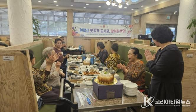 코리아타임뉴스 사회팀 | 수원시 팔달구 화서1동은 지난 1일 지역 내 생일을 맞이하신 독거어르신 8명을 모시고 이교수한정식(대표 이태석)에서 '어르신 사랑의 생신상' 행사를 진행했다.