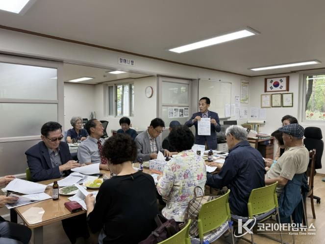 코리아타임뉴스 사회팀 | 수원시 팔달구 화서2동 행정복지센터는 지난 10월 1일 오전 11시, 관내 16개소 경로당 회장단이 참석한 가운데 꽃뫼버들마을 금강아파트 경로당에서 2025년 10월 경로당협의회 월례회의를 개최했다.