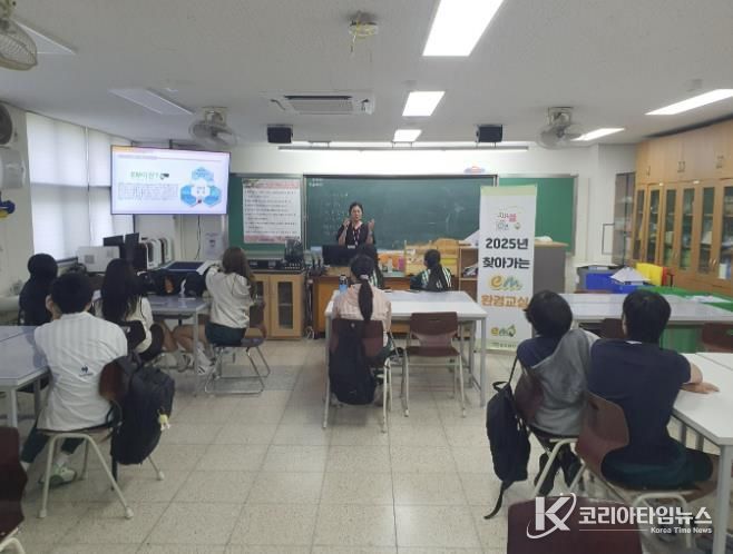 코리아타임뉴스 경기취재본부 | 동두천시는 10월 1일 송내중앙중학교를 방문해 학생 16명을 대상으로 유용미생물(EM) 교육을 진행했다.