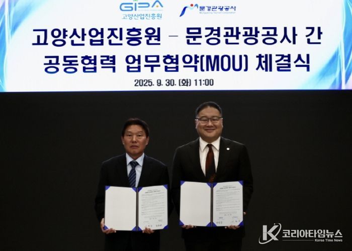 코리아타임뉴스 기동취재팀 | 고양산업진흥원이 지난 30일, 고양아쿠아특수촬영스튜디오에서 문경관광공사와 공동협력 업무협약 MOU를 체결했다.