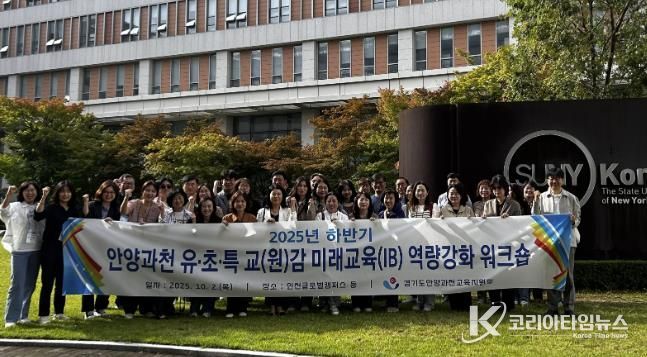 코리아타임뉴스 사회팀 | 경기도안양과천교육지원청은 10월 2일, 송도에 위치한 인천글로벌캠퍼스 일대에서 안양과천 관내 유치원, 초등학교, 특수학교 교(원)감을 대상으로 ‘2025 하반기 미래교육(IB교육) 역량강화 워크숍’을 운영했다.
