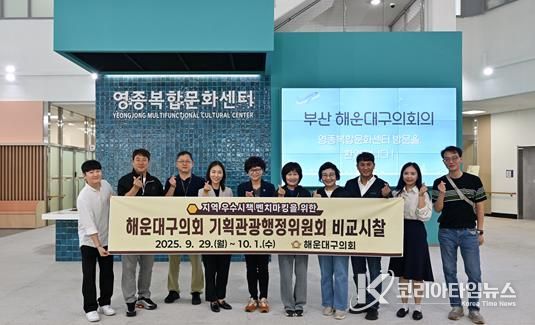 코리아타임뉴스 노승선 기자 | 해운대구의회 기획관광행정위원회는 지난 9월 29일부터 10월 1일까지 2박 3일간 인천과 시흥 지역 주요 시설을 방문하여 해양레저·도시개발·체육문화시설 운영사례를 비교·분석하는 현장 시찰을 실시했다.