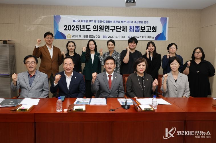 코리아타임뉴스 윤경수 기자 | 용산구의회는 10월 1일 세 개의 의원연구단체가 연구용역 최종보고회를 열어 약 4개월간의 연구 성과를 공유했다. 해당 연구단체들은 지난 4월 말 구성된 후, 6월 착수보고회를 거쳐 이번 보고회에서 지역 현안을 다룬 실질적 연구 결과와 실행방안을 발표했다.