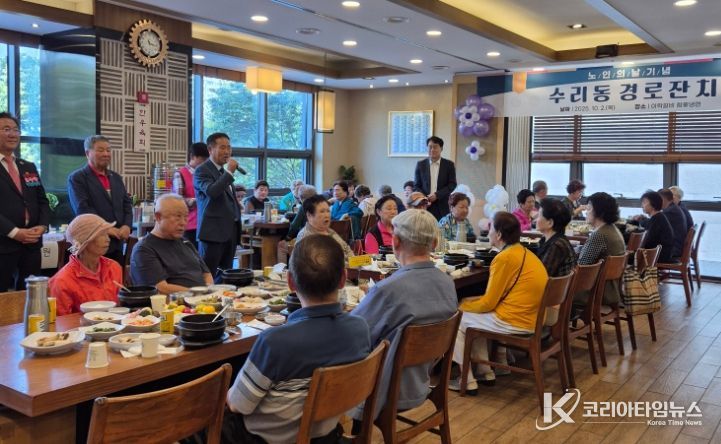 코리아타임뉴스 사회팀 | 군포시 수리동 주민자치회(회장 고진해)는 제29회 노인의 날을 맞아 지난 10월 2일 수리동 어르신들을 대상으로 경로잔치를 개최했다. 이번 행사는 하은호 군포시장, 이학영 국회부의장 등 여러 내빈과 수리동 직능단체장들이 어르신 100여 명과 뜻깊은 자리를 함께했다.