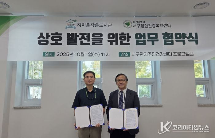 코리아타임뉴스 대전취재본부 | 대전 서구 평생학습원 지치울작은도서관과 서구정신건강복지센터는 상호 협력과 공동 발전을 위한 업무협약을 체결했다.
