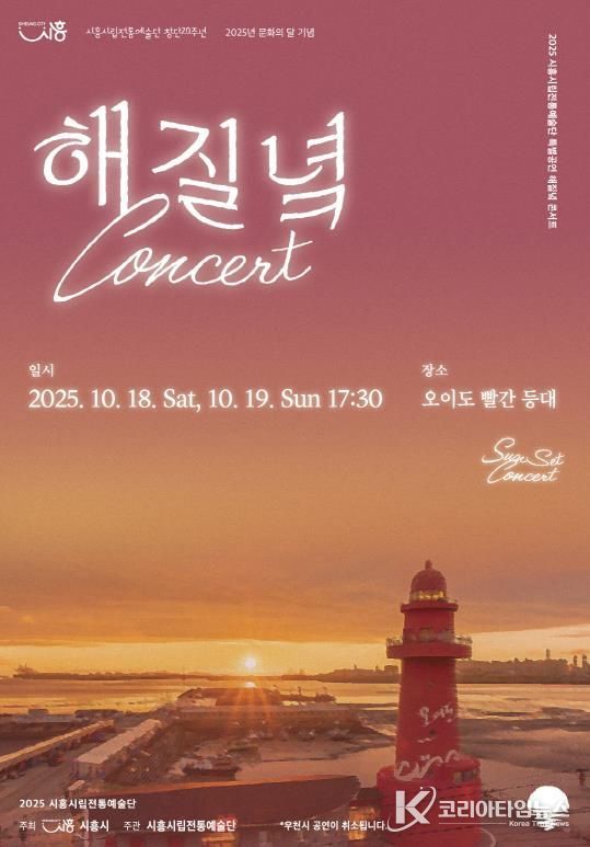 코리아타임뉴스 경기취재본부 | 시흥시는 10월 18일부터 19일까지 이틀간 ‘오이도 빨강등대’에서 시립전통예술단의 ‘해질녘 콘서트’를 선보인다.