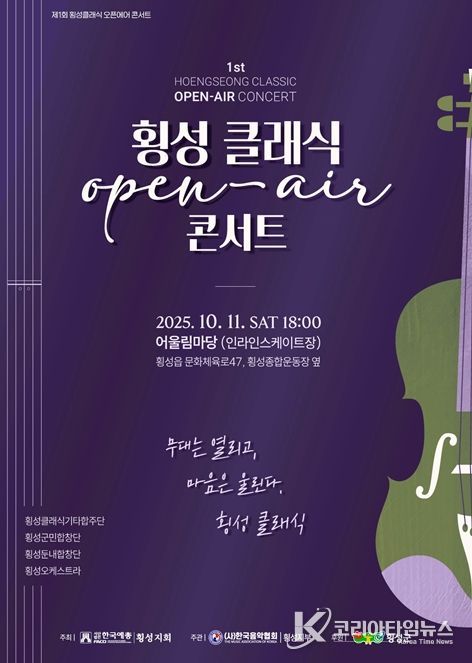 코리아타임뉴스 이아름 기자 | 횡성군민에게 깊은 음악적 감동을 선사할 ‘제1회 횡성 클래식 오픈에어 콘서트’가 오는 11일 오후 6시, 횡성 어울림마당(인라인스케이트장)에서 열린다.