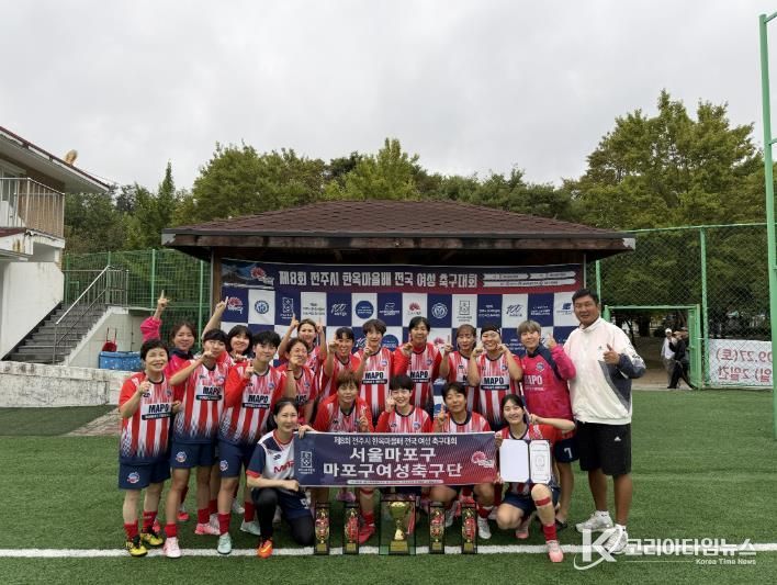 코리아타임뉴스 윤경수 기자 | 마포구가 지원하는 ‘마포구 여성축구단’(단장 박종래)이 ‘제8회 전주시 한옥마을배 전국 여성 축구대회’에서 챔피언에 오르는 쾌거를 이뤘다.