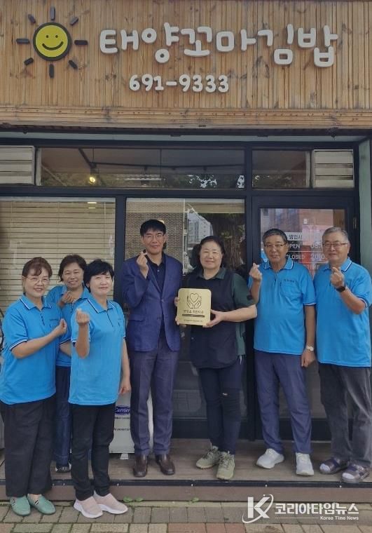 코리아타임뉴스 사회팀 | 평택시 팽성읍 지역사회보장협의체는 지난 2일, 나눔 활동에 동참한 ‘태양꼬마김밥’에 ‘착한 이웃’ 현판을 전달했다.