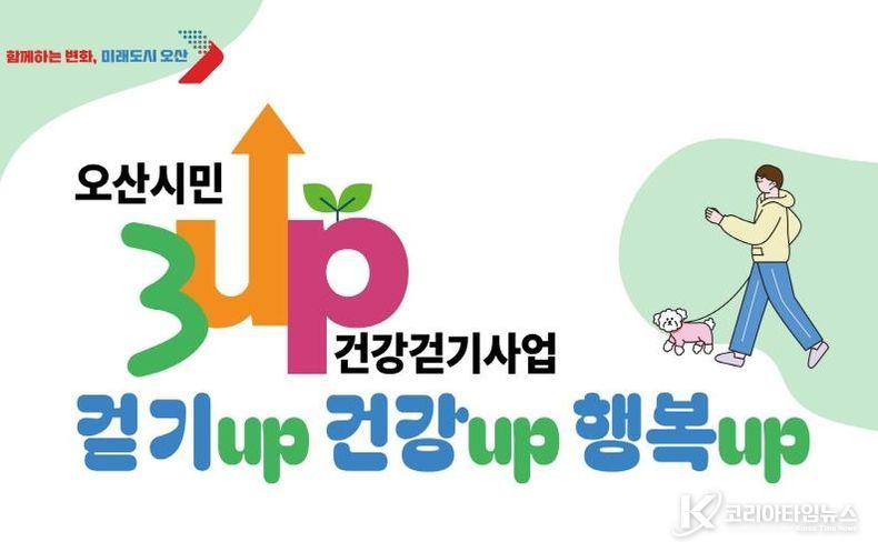 코리아타임뉴스 윤광희 기자 | 오산시는 10월부터 12월 31일까지 시민들의 꾸준한 건강관리를 돕기 위해 ‘3UP 건강걷기 챌린지’를 연말까지 운영한다고 밝혔다.