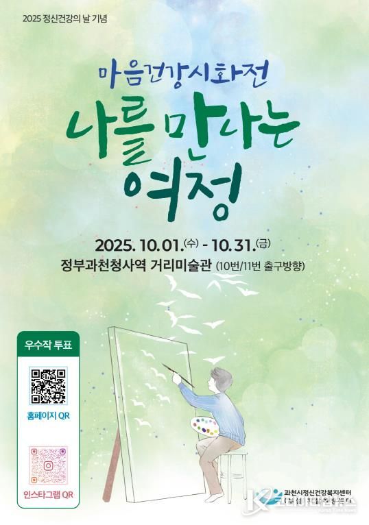 코리아타임뉴스 사회팀 | 과천시정신건강복지센터는 정신건강의 날을 기념하여 10월 한 달간 ‘마음건강 시화전-나를 만나는 여정’을 개최한다고 10일 밝혔다.