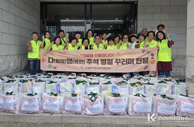 이번 꾸러미는 20여 명의 옥천면 지역사회보장협의체 위원들이 정성껏 준비한 전과 송편, 식혜, 후원물품 등 27종으로 구성됐으며, 위원들이 외롭게 명절을 보내는 어르신과 장애인 등 소외 계층 가정을 직접 방문해 꾸러미를 전달했다.
