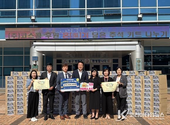㈜코스콤은 이번 전달식을 통해 총 1,000만 원을 후원했으며, 이를 바탕으로 동구 내 취약계층 250세대에 세대당 4만 원 상당(사과, 배, 찹쌀, 튀김가루, 참치, 햄, 식혜, 계란, 카놀라유, 약과 총 10종)의 추석맞이 물품 키트를 지원했다.