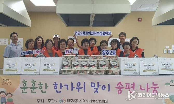 코리아타임뉴스 윤광희 기자 | 양주시 양주2동 지역사회보장협의체가 최근 추석을 맞아 관내 취약계층 100가구를 대상으로 송편을 전달했다.