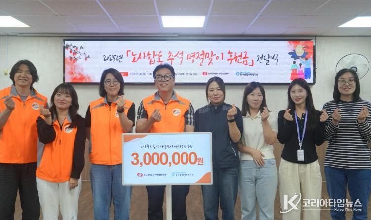 코리아타임뉴스 부산취재본부 | 부산 동구종합사회복지관은 지난 9월 30일, 추석 명절을 앞두고 한국전력공사 부산울산본부로부터 노사 합동으로 마련한 300만 원의 후원금을 전달받았다고 밝혔다.