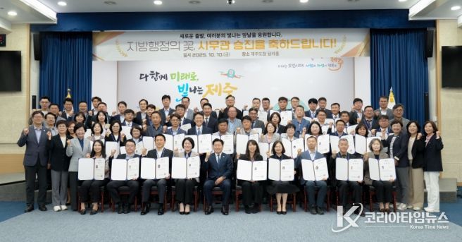 코리아타임뉴스 한장선 객원기자 | 제주특별자치도는 10일 오전 도청 탐라홀에서 사무관 및 연구·지도관 승진자 50명에게 임용장을 수여했다.
