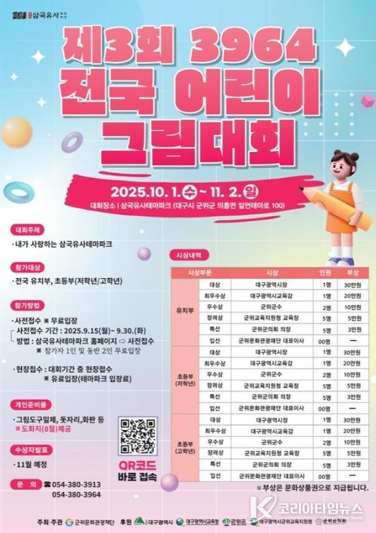 또한, 대회 기간 중 11월 1~2일에는 '2025 군위 바베큐 축제'도 함께 열려, 참가 가족들이 그림대회와 축제를 동시에 즐길 수 있다.
