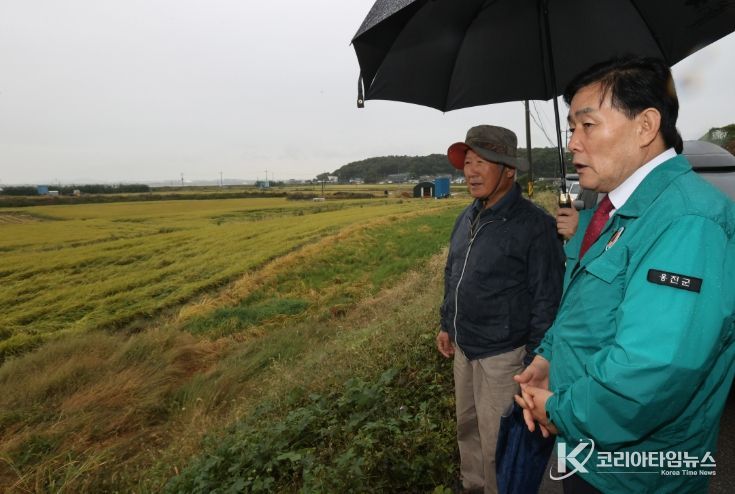 코리아타임뉴스 사회팀 | 옹진군수는 지난 6일에 내린 집중호우와 강풍으로 인해 벼 도복 피해를 입은 북도·영흥면을 방문하여 피해 상황을 점검했다.