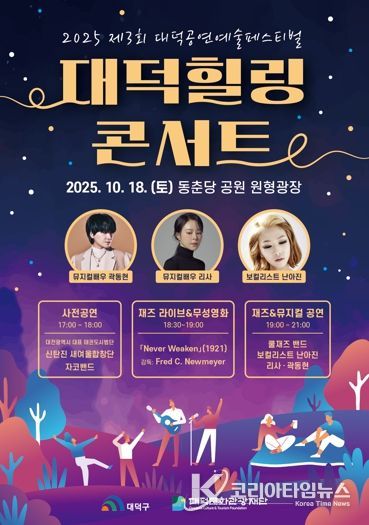 코리아타임뉴스 대전취재본부 | 대덕문화관광재단은 오는 18일 동춘당 원형광장에서 ‘2025 대덕힐링콘서트’를 개최한다고 밝혔다.