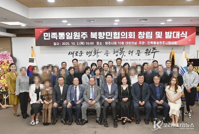 코리아타임뉴스 이아름 기자 | 민족통일원주시협의회는 지난 2일 원주시청 10층 대회의실에서 ‘민족통일원주 북향민협의회’ 창립 발대식을 개최했다.