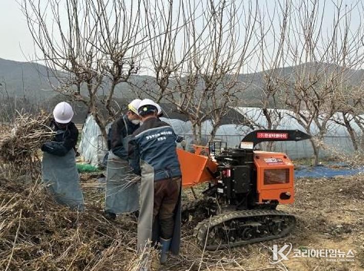 파쇄지원단은 산림 인접 농지와 영농부산물 처리가 어려운 취약계층 농가를 우선 지원하며, 마을을 직접 방문해 과수 잔가지, 고춧대 등의 영농부산물을 수거·파쇄한다.