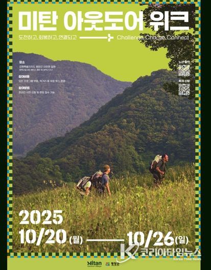 코리아타임뉴스 이아름 기자 | 평창군은 오는 10월 20일부터 26일까지 7일간, 미탄면 일원에서 『미탄 아웃도어 위크』를 개최한다.