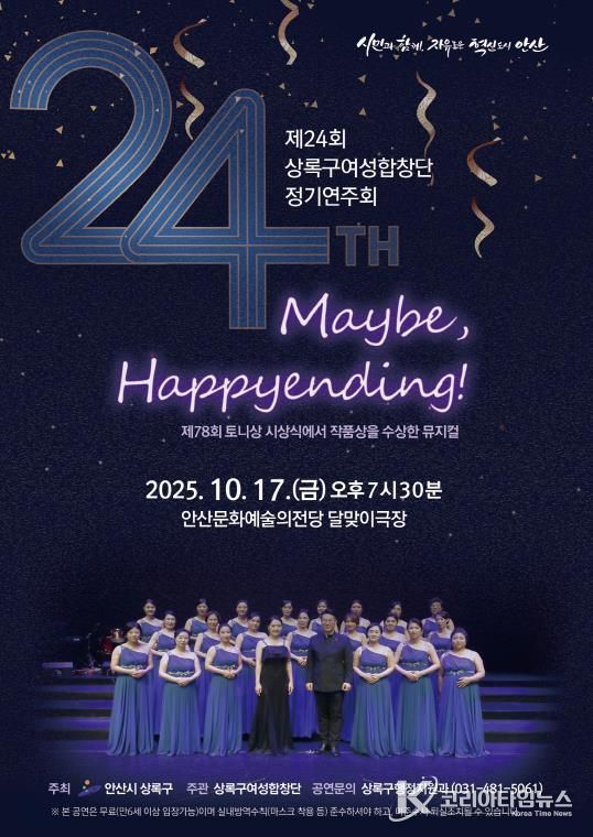 코리아타임뉴스 기동취재팀 | 안산시 상록구는 오는 17일 오후 안산문화예술의전당 달맞이극장에서 ‘제24회 상록구여성합창단 정기연주회’를 개최한다고 13일 밝혔다.