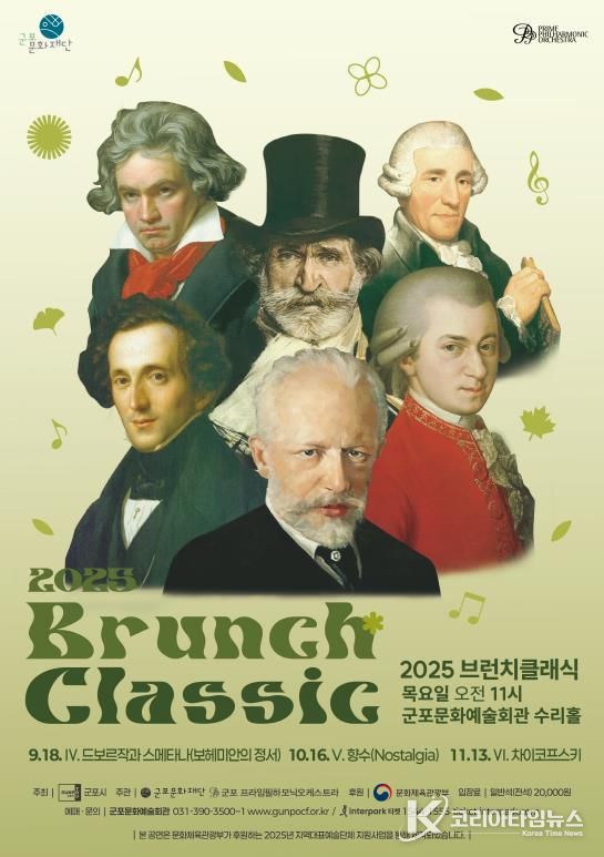 코리아타임뉴스 이아름 기자 | 군포문화재단은 오는 10월 16일 오전 11시, 군포문화예술회관 수리홀에서 ‘2025 브런치클래식’의 다섯 번째 공연을 개최한다.