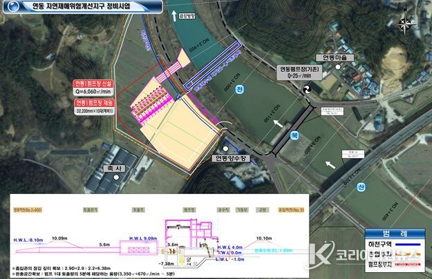 이번 사업은 연동제수문의 낮은 높이로 인한 홍수 역류와 배수펌프장 부재로 발생한 배수 불량 문제 해결을 목표로 한다.