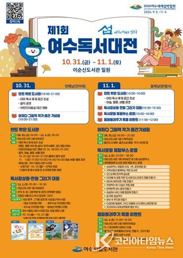 코리아타임뉴스 노승선 기자 | 여수시는 오는 10월 31일부터 11월 1일까지 이틀간 이순신도서관 일원에서 ‘제1회 여수독서대전’을 개최한다.